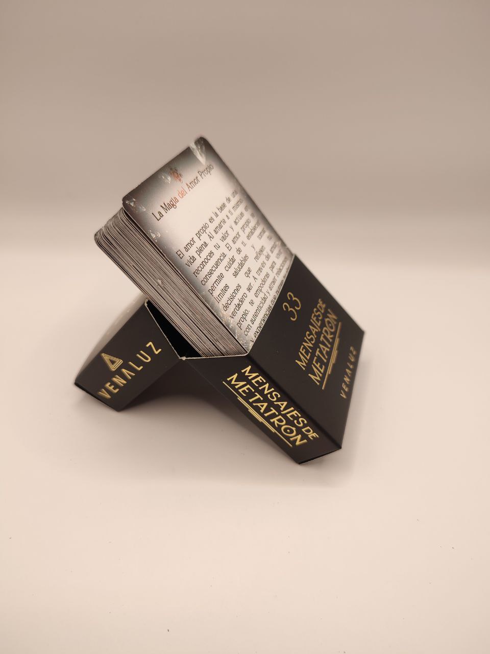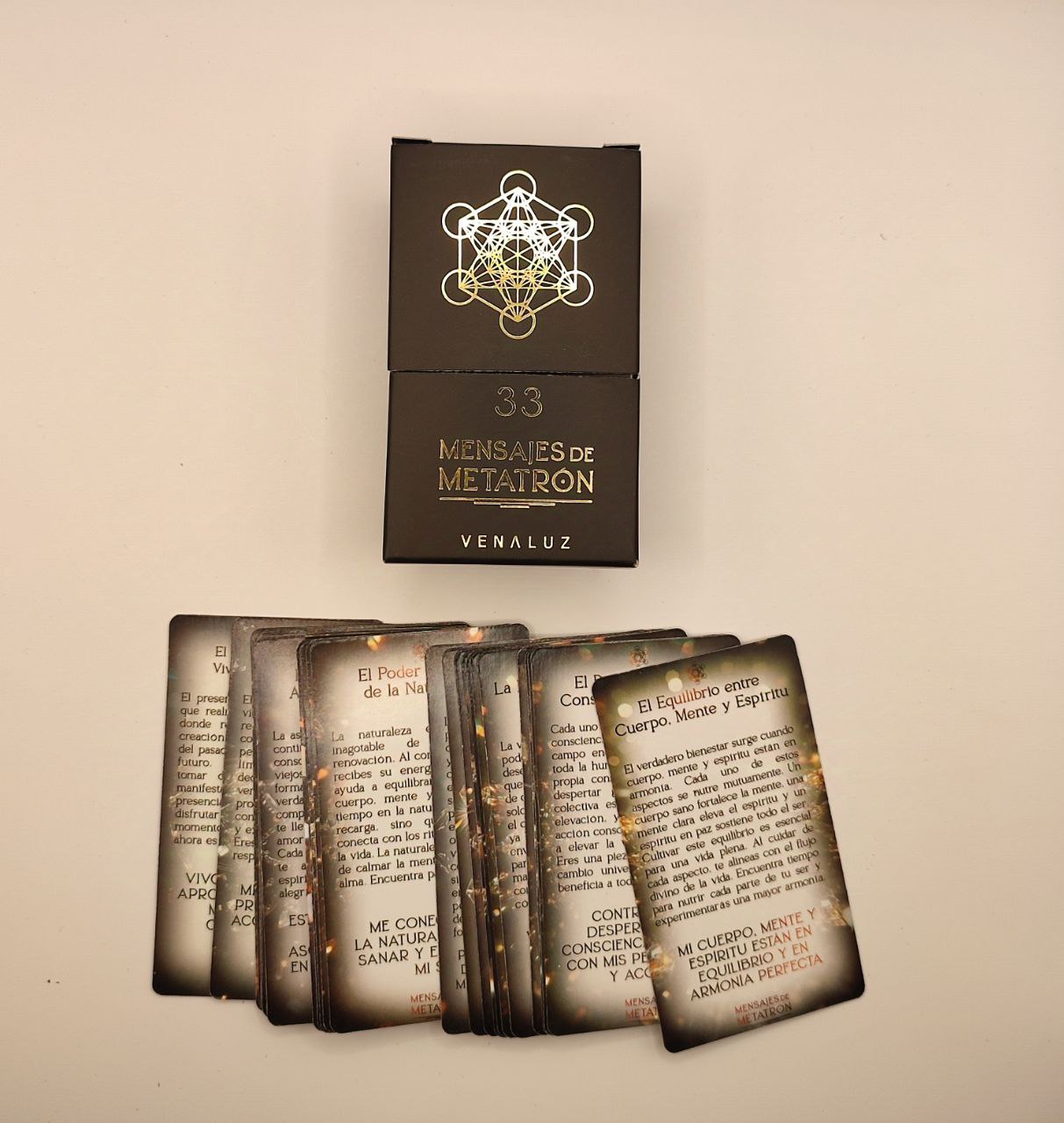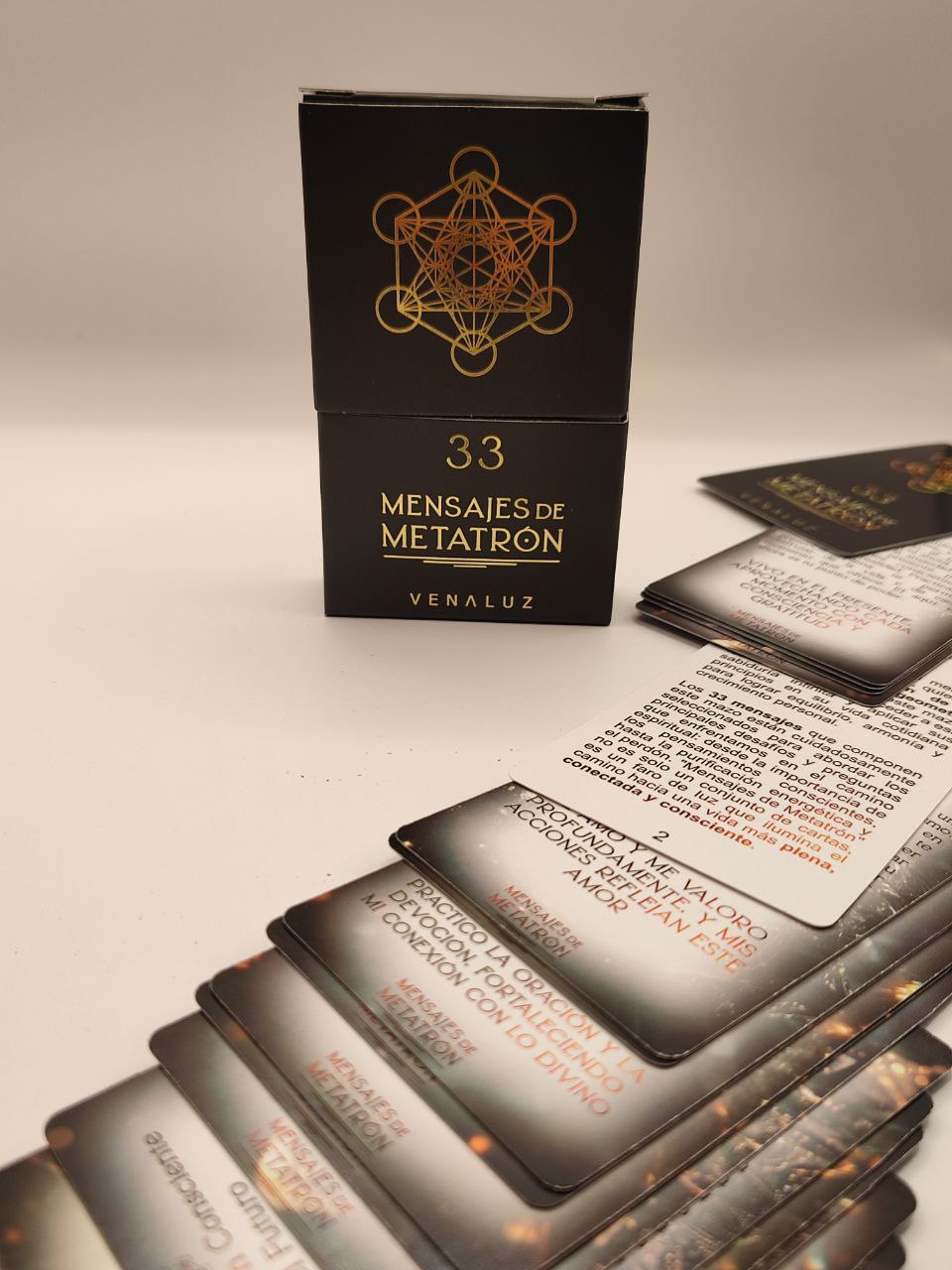 Las tarjetas con los 33 mensajes de Metatron me encantan, son prácticas y fáciles de usar, portátiles para traer en la bolsa y usarlas en cualquier lugar, para meditar, cada mensaje te lleva a lo positivo y es una puerta a trabajar contigo mismo, con los otros y con el exterior. Es una herramienta para momentos de certeza y de guía diaria. Me permiten estar enfocada y me brinda un proceso de apertura espiritual y conexión interior. Cada carta invita a la introspección, reflexión y a crear un habito de pensamiento y acción. Gracias Luis 33 por esta bella herramienta de luz y amor!