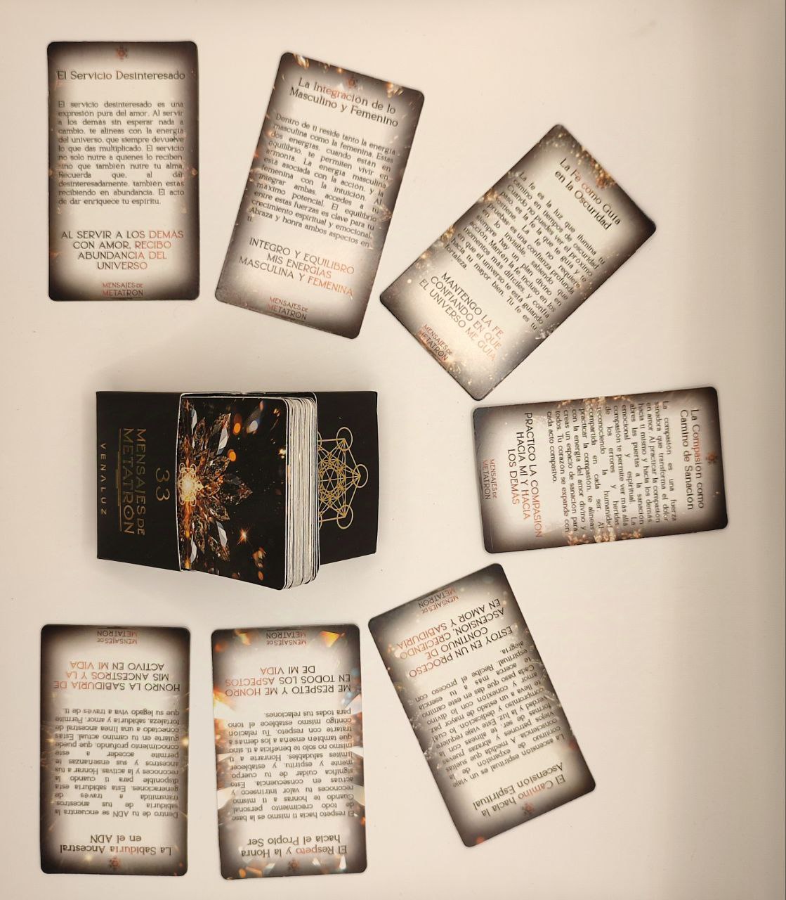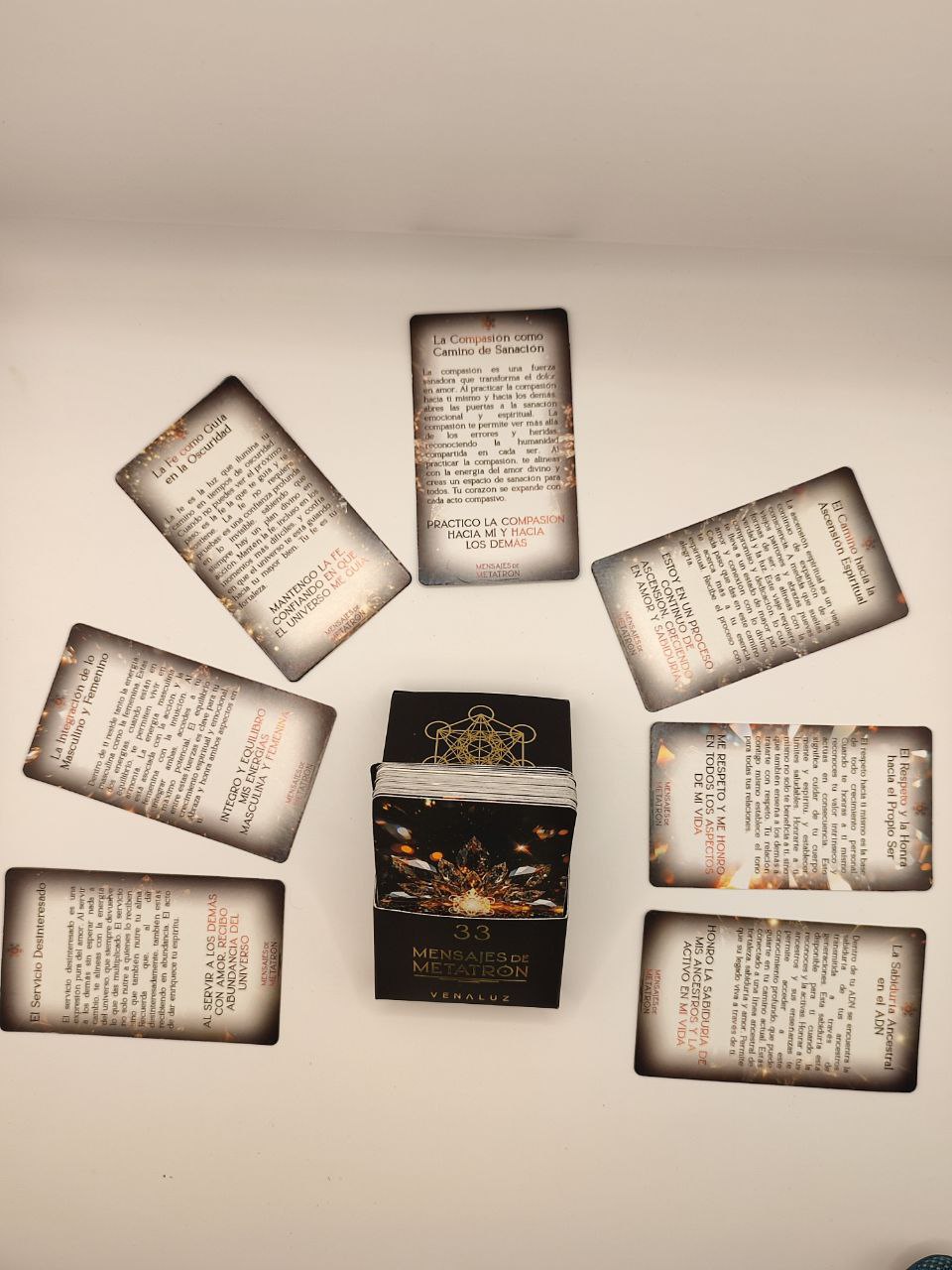 Hermosas tarjetas desde su diseño en tamaño color 33 mensajes poderosos de Metatron para un trabajo interior toma de desiciones importantes en todos los aspectos de la vida personal, laboral, espiritual un gran auto regalo ❤️